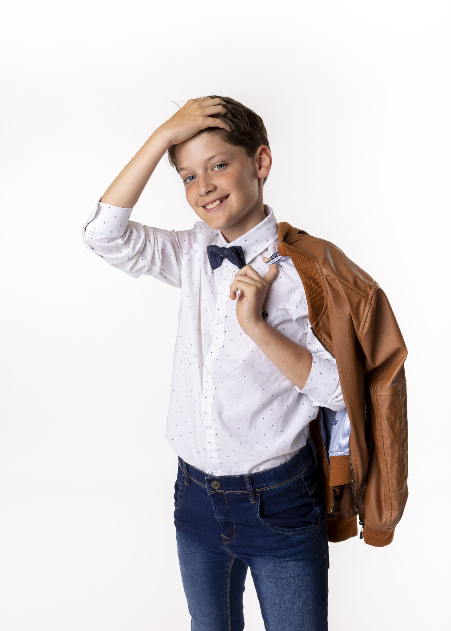 Wil je meer variatie in de foto’s? Geen probleem! Je kind kan van kleding wisselen tijdens de shoot, zodat je zowel leuke foto's krijgt in feestelijke kledij als een meer speelse look. Heb je al een idee voor de uitnodigingen? Dan kan je bijvoorbeeld een mooie foto in casual kleding gebruiken, terwijl de communiekledij een verrassing blijft.